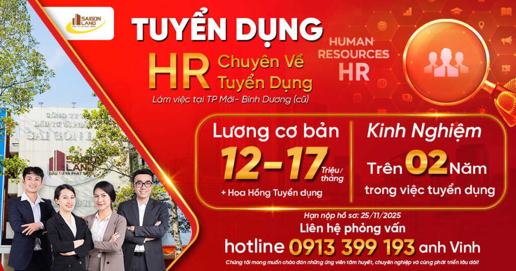Mức lương: 12.000.000 – 17.000.000 VNĐ/tháng (theo năng lực và kinh nghiệm) + Hoa hồng tuyển dụng Kinh nghiệm yêu cầu: Tối thiểu 02 năm trong lĩnh vực Nhân sự Địa điểm làm việc: 157 Lê Lợi, Phường Bình Dương, Tp. Hồ Chí Minh ( TP Mới Bình Dương cũ) Thời gian làm việc: Giờ […]