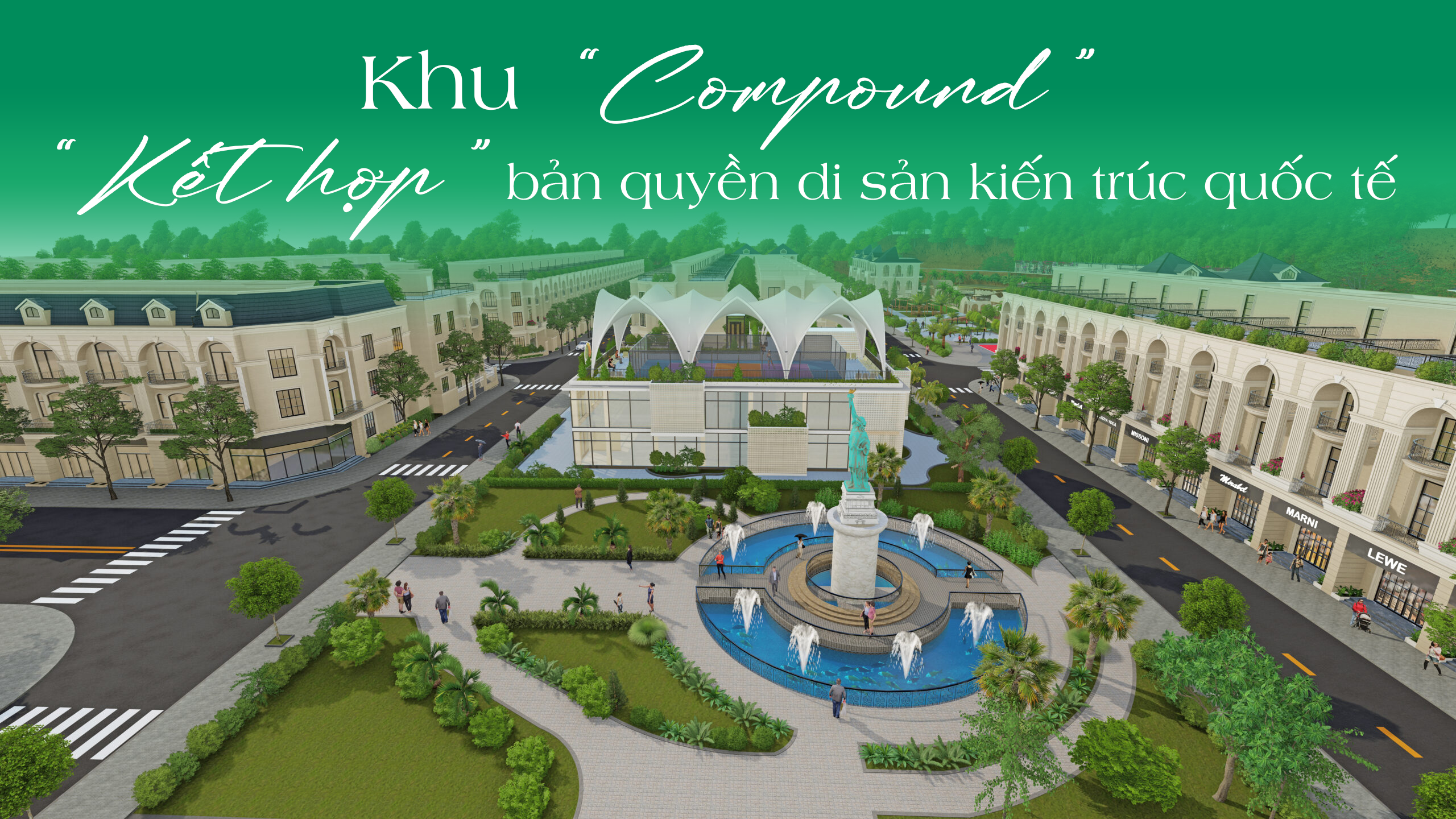 Tại Green Valley City, tượng Nữ Thần Tự Do được đặt tại quảng trường Liberté Avenue — trái tim của toàn khu compound — không chỉ là điểm nhấn thị giác mà còn là tuyên ngôn về một phong cách sống: tự do, khai phóng và đẳng cấp.